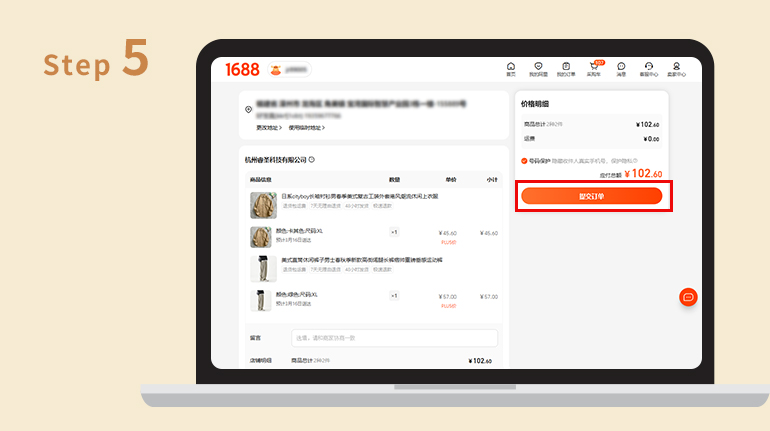 步驟三 : 1688下單購買貨品