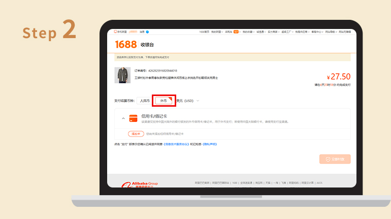 阿里巴巴1688提供兩種方式支付,「大陸支付寶」與「國際信用卡」。