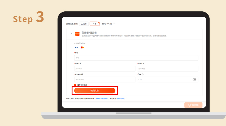 Step.2 點擊使用外幣付款,添加信用卡