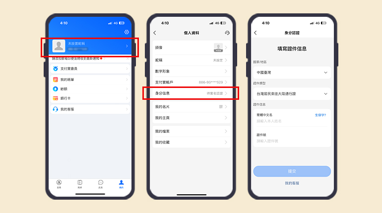 使用大陸支付寶:台胞證認證支付寶餘額、綁定中國銀行卡的支付寶