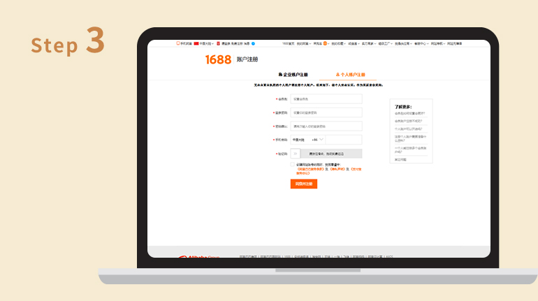 步驟一 : 1688新手註冊
